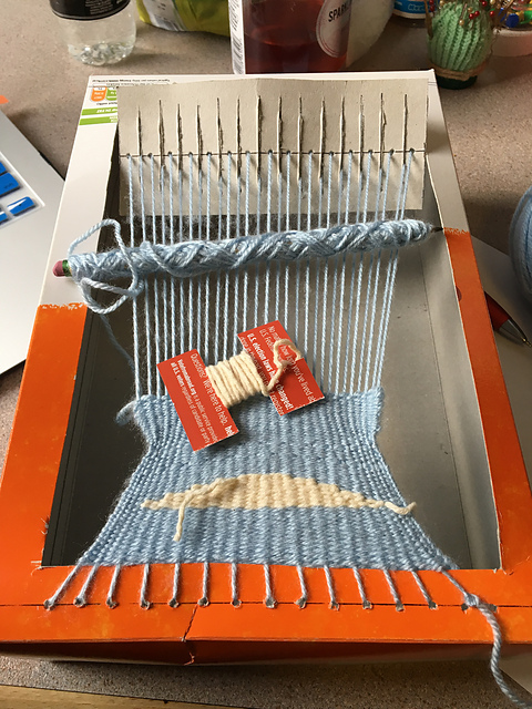 I weave, but it's always on makeshift looms. Real ones cost a lot and I move too much to make it worth it, much to my chagrin. It leads to weird workarounds like this:
